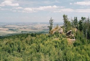 U rozcestníku pod patou skály je postaveno dřevěné kryté odpočívadlo; rozhodně však stojí za to vyšplhat se ještě 300 metrů po značené odbočce k vyhlídce na vrcholové plošině (501 m.n.m), kde si teprve vychutnáme tu správnou odpočinkovou pohodu s výhledy jak do Hlubokého dolu pod námi, tak na hřeben Borůvkové hory. Poté dál pokračujeme po zelené značce mírným stoupáním lesní cestou ke kilometr vzdálenému rozcestníku cyklistických tras „U tří lip“. Vedle něj je umístěn dřevěný turistický srub s informačním panelem cyklostezky. Po dalším kilometru mírného výstupu docházíme do lesního sedla s rozcestníkem „Pod Bílou skálou“, od něhož je to po červené značce k vrcholu Borůvkové hory již jen půldruhého kilometru.