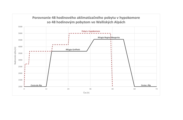 Na závěr ještě přehledné porovnání aklimatizačního pobytu ve Walliských Alpách (výchozí bod: Topolčany) a v hypokomoře v Topolčanech: