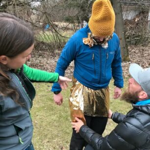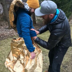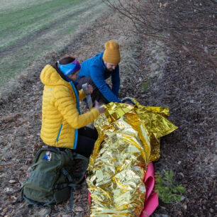 - Smyčku z fólie můžete využít také jako sedačku, kterou nesou dva zachránci mezi sebou.