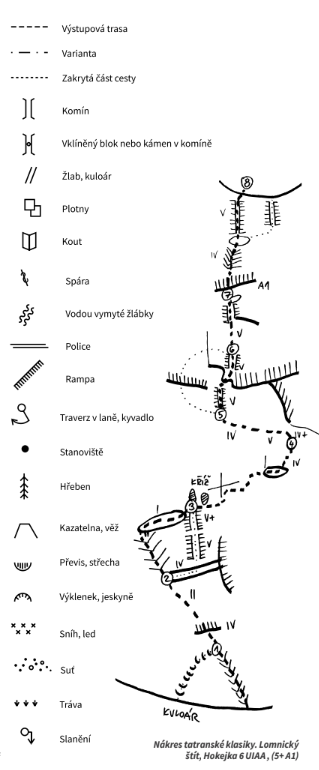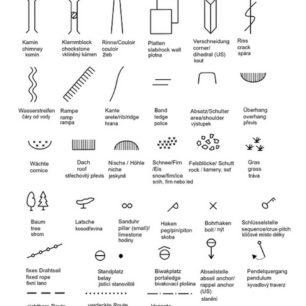 Orientovat se v průvodcích a nákresech cest patří k základním dovednostem lezce či ferratisty. Uvádíme příklad základních symbolů používaných organizací UIAA. Některé země nebo oblasti mají své specifické značky či názvosloví. Kromě symbolů byste měli být schopni převést lokální obtížnost.
