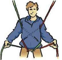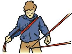 Lano vedete (zepředu) pod nohama, potom křižně přes prsa a za rameno, kde ho již držíte rukou a jste schopni kontrolovat jeho prokluz. Druhá ruka slouží k udržení stability a přichytává se napnutého konce lana. Nejjednodušší bude podívat se na video níže. Nevýhodou tohoto způsobu je, že je dost bolestivý. Starší horolezci nad tím však mávají rukou a říkají, že to chce jen trochu drilu, bundu s vysokým límcem a hrubé kalhoty. Výhodou oproti dalšímu způsobu je možnost jeho použití jen na jednom prameni lana.