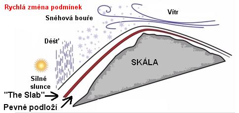 3) „The Slab“ – je deska hutného, těžkého sněhu, který se hromadí na nestabilní vrstvě