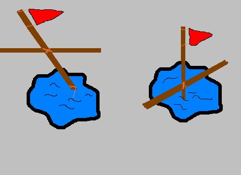 Své šance na úlovek zvýšíte, když si děr s návnadou vysekáte více. Takže bychom měli díru a háček ve vodě. Teď je třeba vytvořit systém, který nás včas upozorní na to „že tam ryba je“. To se udělá tak, že si vyrobíte praporek z nějakého materiálu, který půjde dobře vidět (igelit, látka apod.). Uvážete ho na klacek. Na jeho druhém konci bude uvázán vlasec. Na takto „ovázaný“ klacek připevníme další (křížově). Bude nám tak vytvářet oporu, pokud ryba zabere (viz obr.).