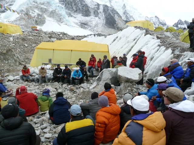 „Mezitím Polda s Markem absolvovali setkání vedoucích expedic, kde se řešila koordinace postupu, protože (na rozdíl od minula) je zde cca 40 expedic, což je asi 600 lidí včetně personálu a doplňkových programů“.