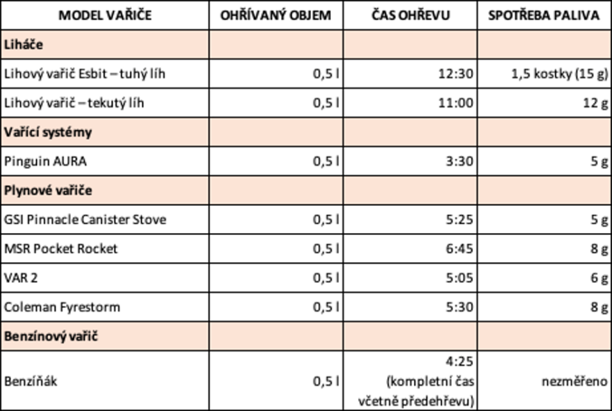 ORIENTAČNÍ TESTOVÁNÍ A PŘEHLED RŮZNÝCH TYPŮ VAŘIČŮ