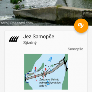 V mobilu nejvíce využijete asi informace o jezech, u každého najdete podrobný popis sjíždění/přenášení a také přehledné schéma a fotku. Dále jsou k dispozici například kontakty na kempy, vhodná nástupní místa na vodu, podrobnosti o zajímavostech v okolí a informace o dopravě.