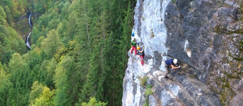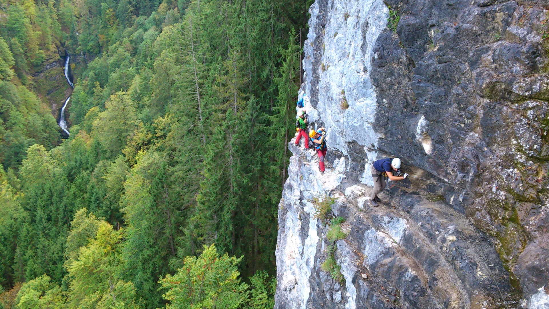 Přejít do galerieKarabiny na ferratovém setu jsou obzvlášť pevné a disponují vysokou nosností a automatickým uzavřením zámku, aby se při pohybu samovolně neotvíraly.