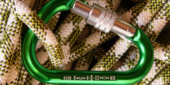 V obchodech si můžete koupit také různé karabiny na klíče, k zavěšení všeho možného nebo pro průmyslové použití. Takové karabiny nikdy nepoužívejte při lezení (tak maximálně si na ně pověsit třeba lezečky na štandu 🙂 ), ale už to, že je máte pověšené někde na sedáku může vést k omylu a jejich použití (takové nehody se už staly).