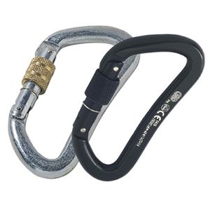 Ocel je ve srovnání s ostatními materiály těžká a z toho důvodu se pro sportovní účely prakticky nepožívá. Hlavní využití je v pracovní a záchranné oblasti. Vydrží i méně šetrné zacházení a je oděruodolnější než slitiny hliníku. Povrchová úprava karabiny může být leštěný samotný materiál nebo elox.