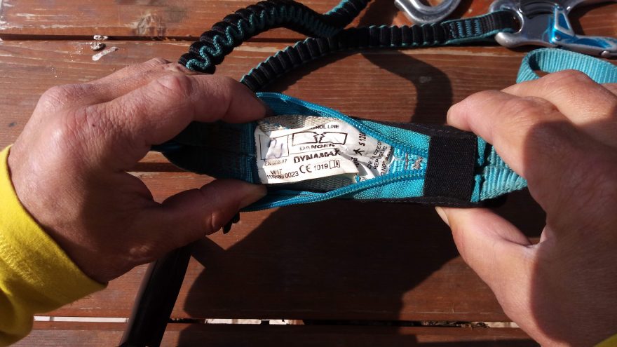 Další položkou ke kontrole může být i párací tlumič pádu používaný na via ferratách. (Pozn.: Jiný než párací snad ani v dnešní době už nepoužíváme.) Kromě kovových částí obsahuje i textilní prvky, pro které platí to samé, co pro úvazky. Navíc tu ale ještě musíte kontrolovat i případnou aktivaci, které může vzniknout třeba příliš prudkým odsednutím nebo malým pádem. Proto otevřeme obal páracího popruhu a zkontrolujeme bezpečnostní etiketu, která musí být neporušená. Zkoukneme i elastické popruhy a jejich napojení na tlumič a karabiny. Chod karabin (většinou dlaňových) by měl být opět plynulý a měly by se 100% dovírat a zůstávat dovřené.