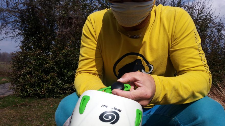 • Nastavení helmy pomocí aretačních segmentů a spon nedrží helmu na hlavě a ta padá do stran?