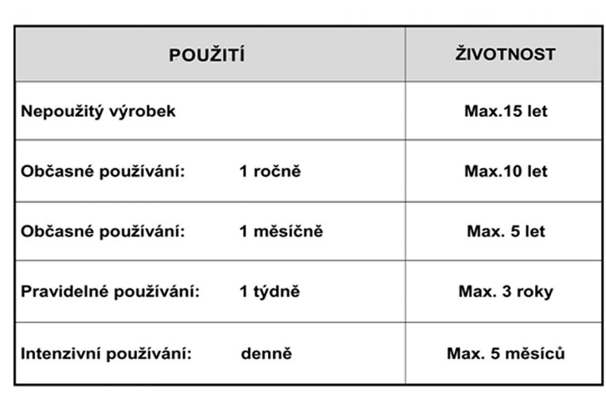 U textilních výrobků platí obecně toto: Textilní výrobky mají životnost 10 + 5 let (5 let skladování podle návodu, 10 let od prvního použití). Pokud oprávněná osoba zjistí, že textilní výrobek není způsobilý pro další bezpečné použití, je v jeho kompetenci doporučit výrobek k vyřazení z dalšího používání, i když doba životnosti ještě neuplynula. Kromě kontroly před a po každém použití doporučujeme provádět každé 3 měsíce celkovou prohlídku úvazku. Je nutno kontrolovat: Textilní materiál: Řezy, prodření, škody způsobené vlivem stárnutí, vlivem vysoké teploty, vlivem chemikálií atd. Švy: Přetržené, přeřezané nebo vypárané nitě. Spony: Správná funkce spon. (zdroj: Rock Empire)
