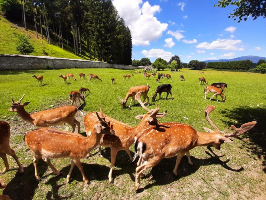 - cyklookruh k hradu Rosegg (24 km, 350 v. m): od Faakersee jsme zamířili po Drávské cyklostezce ke zřícenině hradu Rosegg, kde jsme si prošli okruh skrz zoo park se zástupci alpské fauny. Návrat přes malé rurální vesničky s výhledy na hřeben Karavanek po R1C (Rosentalweg). Doporučujeme nevynechat posezení v restauraci s fantastickým výhledem na vrcholku Tabor nad Faakersee (dá se vyjet autem).