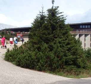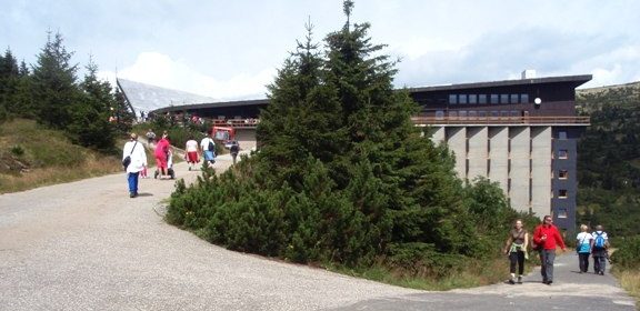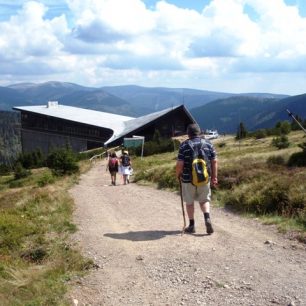 Horský hotel a významná křižovatka turistických cest nad hranou Labského dolu na jihovýchodním okraji Labské louky.