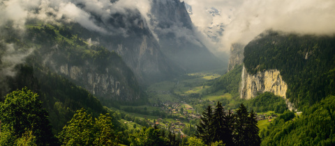 „Samá voda“ tak v překladu zní název Lauterbrunnen, a není se čemu divit. Celkem v tomto údolí najdete 72 vodopádů, které se burácivě řítí z bočních skal.