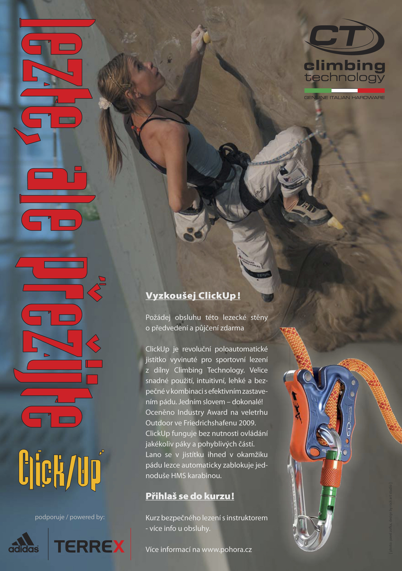 V rámci se akce se budete moci zdarma se zúčastnit kurzu o bezpečném lezení vedeném odborným instruktorem a zároveň si (samozřejmě rovněž zdarma) zapůjčit revoluční jistítko Click Up italského výrobce Climbing Technology.