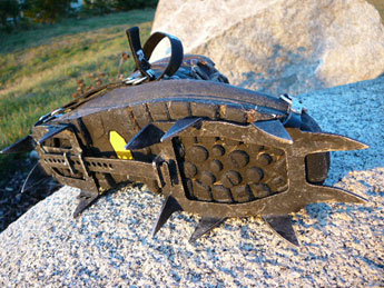 Přejít do galerieDruhé dva hroty jsou umístěny ve směru osy maček a jsou orientovány směrem šikmo dopředu. Směřování šikmo dopředu je poměrně umírněné a odpovídá univerzálnímu zaměření maček. Hroty nesměřují kolmo dolů jako u zcela turistickým maček, ani agresivně dopředu jako u maček určených do strmějších pasáží. Jejich význam oceníte při pohybu po ledovci, kdy zajišťují lepší stabilitu, a také ve strmých pasážích, kdy hroty slouží jako nutná opora. Zároveň zvyšují jistotu při lezení po mixové skále. Čtvrtý pár je umístěn kolmo na osu maček a využijeme jeho brzdného efektu. Zvyšuje jistotu jak při výstupu, tak i sestupu a také při pohybu maček pomáhá vyhazovat nalepený sníh.