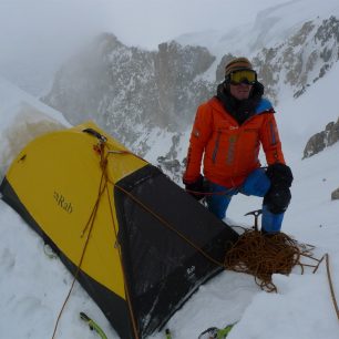 „Dnes máme další nechtěný bivak, ale už na samém vrcholovém hřebenu. Bod G je od nás nějakých 40m, takže na plácnutí ruky, ale musíme si to nechat na zítřek a půjdeme přes něj. Protože dolez skalní bariéry byl mazec, kdy i rukavice šly stranou a do toho padla tma a drobně sněžilo. Jinak jsme se Zdendou v pohodě, připraveni se utkat o další, jenže bacha, už sestupový den. Ukládáme se na vršku Géčka ke spánku.“