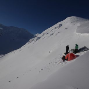 Na druhou noc v horách stavíme stan, kam zalézáme hned po západu slunce. Co může zmrznout, zůstává venku, vše ostatní musí do spacáku. V podstatě se akce nese v duchu hesla „i cesta může být cíl“, v plánu je nyní pouze postupovat po hřebeni dále na východ a v sobotu, kdy nám jede vlak domů, sestoupit do údolí. Teploměr třetí ráno ukazuje hodnotu, kdy si říkám, že musí sklíčko hodinek asi už explodovat. Před pádem do propasti trudomyslnosti nás zachraňuje výhled ze stanu – modré nebe, královské výhledy a před námi nepopsatelná hřebenová etapa. Přesně kvůli dnům jako je tento si říkáte, že vám to za to stojí. Komu nezamrzl foťák, snaží se v palčákách občas něco cvaknout. Jediné použitelné fotky z celého přechodu jsou právě z tohoto dne. Kolem třetí hodiny odpoledne padla – začínáme kopat záhrab a daří se nám v něm v noci dostat na teploty kolem nuly. Luxus.