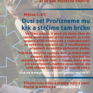 Mýty o první pomociVe spolupráci s PrPom.cz vás bude každý týden na stránkách Pohora.cz čekat nový mýtus o první pomoci. Všechny mýty naleznete v nové sekci První pomoc. |
