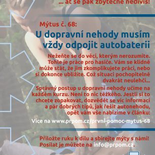 To není tak docela pravda, jak by se mohlo na první pohled zdát. Odpojení autobaterie u dopravní nehody je sice vhodné, ale předtím musí následovat spoustu úkonů, které je potřeba udělat, například vzít si reflexní vestu, umístit výstražný trojúhelník na vhodné místo…