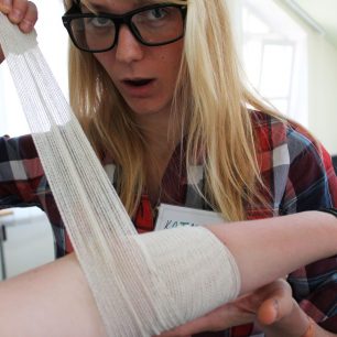 Pokud potřebujeme zastavit masivní krvácení, pak metodou první volby jsou prsty do rány — přímý tlak v ráně (nejlépe přes nějakou savou vrstvu, ve které se může krev srážet) je nejúčinnější metodou v laické první pomoci. Pokud tlak na ránu udržíte, rána neprosakuje a vy nemusíte pacienta opustit, pak tuto metodu neměňte, ne každé krvácení musí končit obvazem…