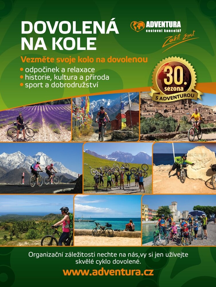 Zažijte cyklo-dovolenou snů v partě parádních lidí s CK Adventura. Vydejte se za pohodovou cyklistikou do Provence či Toskánska, v sedle kola objevte zakarpatskou Ukrajinu, Bosnu a Hercegovinu, rumunský Banát, Švýcarsko, Balaton či Kypr. Za exotikou se s kolem vydejte do Nepálu, indického Ladakhu, Izraele a Palestiny nebo Arménie.