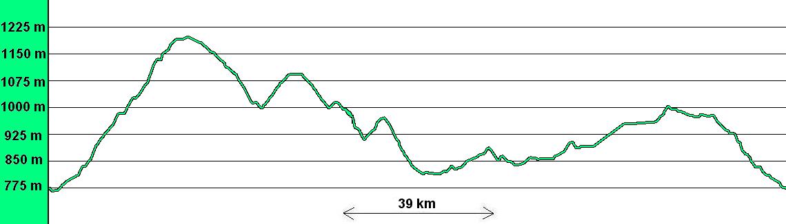 Terén: zpevněná cesta 19,5 km, asfalt 19,5 km