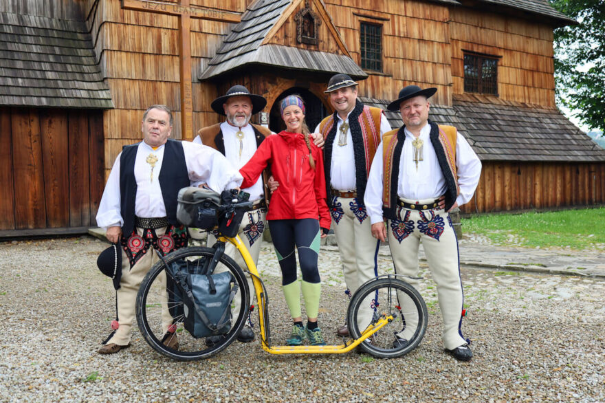 Jasně, jsou tam voraři v krojích, kloboucích a s dlouhými bidly, kteří s turisty ten kus řeky splouvají. Plavba turistů na vorech tam má dlouhou tradici, už od 19. století. Klidně vás vezmou i s koloběžkou a ten zážitek desetikilometrové plavby skalnatým kaňonem Dunajce určitě stojí za to.