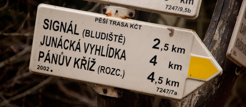 Přeskočíme lesní cestu na druhou stranu, než ze které jsme nyní přišli, a vydáme se znovu po žluté turistické cestě. Tentokráte pozvolna dolů, jedinou menší zastávku, o to však významnější z hlediska historie i jiných okolností, je právě Junácká vyhlídka za úzkou skalní štěrbinou. Ta každoročně vítá nejen všechny zvídavé turisty, především samotné české Junáky, kteří zde chodí zapřemýšlet, utužit přátelství nebo prostě a jenom podniknout zajímavou a netradiční akci, jako je samotný výstup tamních členů skautského hnutí těsně před koncem roku – bez ohledu na počasí a přísun sněhu. Co lze z geniálně umístěné vyhlídky spatřit, můžete vidět na stejně povedeném panoramatickém modelu zde.