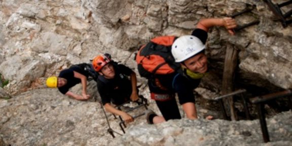 Počítám je. Dvě chybí. „Tome?! Katko?“ Shazuju bágl. Zatímco ostatní spěšně a otřeseni postupně opouštějí feratu, prodírám se proti nim po drátech zpátky nahoru. „Tome! Katko!“ Je mi na blití. Nejsou tu. Na lanech nevisí. Dolů nespadli. „Katko! Tome!!!“ Běžím dál. Neochotně obcházím skalnatý útes. Bojím se, co najdu. Tom s Katkou… Jsou tu. Stojí mimo jakékoli nebezpečí daleko odvšech lan a marně se snaží zapálit cigaretu.