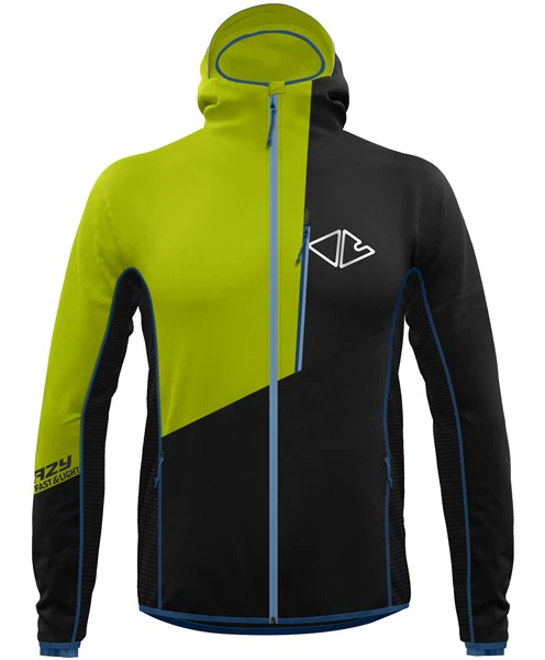 Lehká a sbalitelná hybridní bunda vhodná na aerobní aktivity v horách. Ergonomická kapuce s vyztuženým kšiltem, manžety na rukávech.