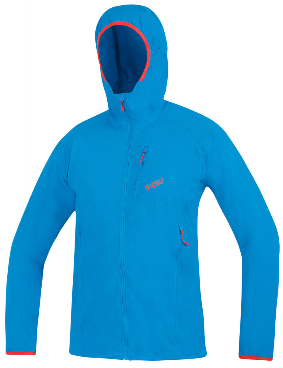 Lehoučká softshellová bunda ze strečového materiálu. Díky kapuci kompatibilní s helmou a dvoucestnému zipu se hodí (nejen) na skály.