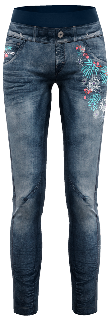 Dámské džínové kraťásky v Rafiki stylu, které na první pohled zaujmou unikátním designem a Rafiki dekorováním. Navržené jsou tak, aby si se v nich cítila dobře při běžném nošení, při lezení, nebo třeba na slackline v parku.