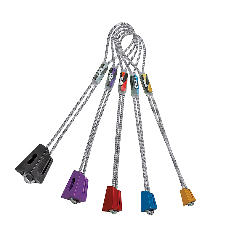 Asymetrické vklíněnce (OFF SET) s ocelovým lankem pro zakládání do spár všech tvarů, které zajistí univerzální sadu pro většinu lezců.