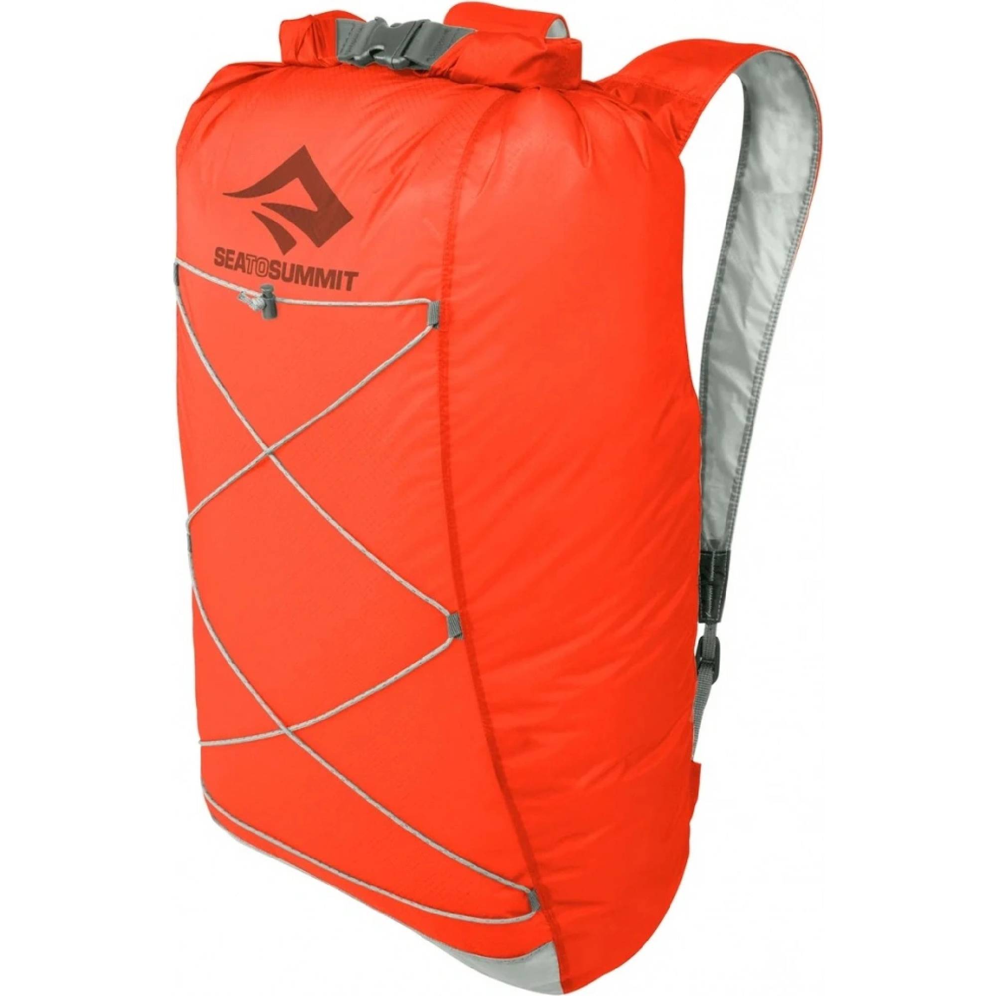Batoh z ultralehkého silikonizovaného 30D nylonu s vyztuženými ramenními popruhy. Zesílené švy v bodech zatížení.