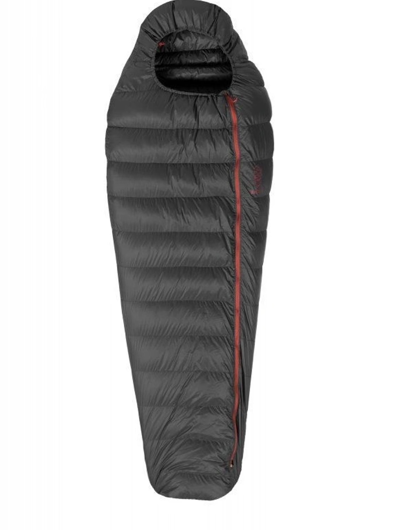 Lehký spacák z kvalitního husího peří (95/5) s vodoodpudivou úpravou od renomované české značky Sir Joseph. H komory a inovovaný Alpha foot box.
