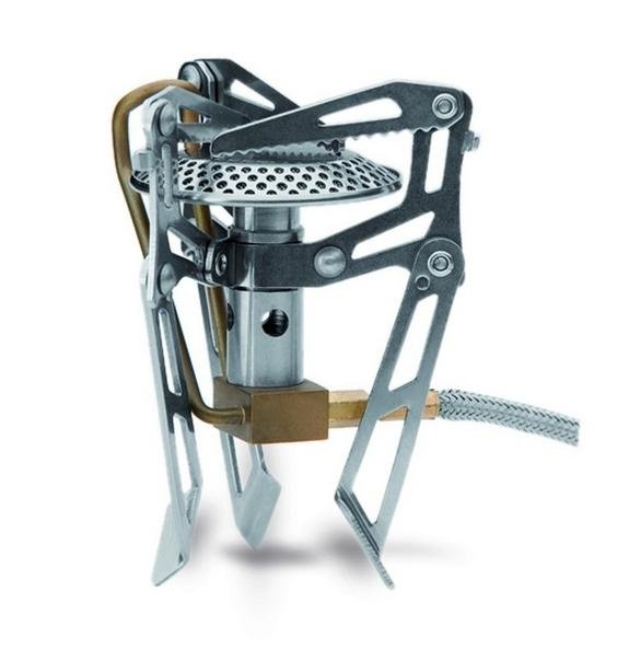 Multipalivový vařič pro ty nejnáročnější. Plamen vařiče lze regulovat pohodlně z dálky pouhým otáčením příruby hadice, díky čemuž se také ušetřilo 30 g na hmotnosti.