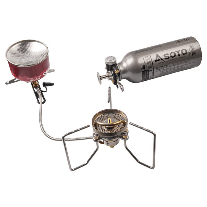 Všestranný vařič, který funguje na plyn, benzín, naftu, petrolej a dokonce i na letecké palivo. Trysky jsou zřetelně označeny pro každý druh paliva a připevněny k podpěrám tak, aby se nikdy neztratily.