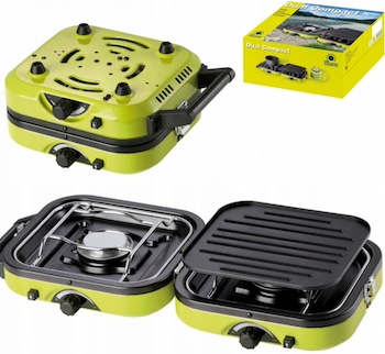 Meva Dual Compact nabízí dvě plotýnka a možnost grilování. S váhou 2,5 kg je vhodný pro převoz v autě nebo v lodi. Funguje pouze s kartušemi 230 g nebo 450 g se závitem. Velké přenášecí madlo vám usnadní přenášení. Možnost složení pak umožňuje bezpečnou přepravu. Plyn se do vařiče přivádí hadicí, takže stabilita celého systému je zajištěna. Hmotnost: 2 500 g Cena: 2 115 Kč
