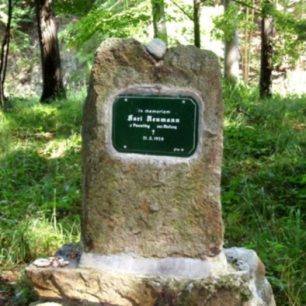 Na východním okraji meandru stojí v lese kamenný pomníček Karla Neumanna z Poustky, kterého tu 21. března 1928 zabil padající strom. V srpnu 2010 pomníček poničila voda z rozvodněné Smědé, ale členové spolku Patron ho opravili již na jaře příštího roku.