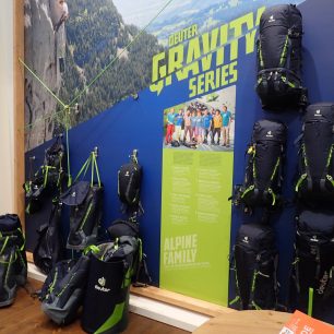 Tato světoznámá značka produkující batohy, tašky, spacáky a doplňky představila na veletrhu novou řadu lezeckých batohů s názvem Gravity. Ucelená kolekce batohů pro horolezce včetně nového „lanovaku“ a tahacího vaku. Dále Deuter předvedl pěknou kolekci batohů na kolo a pro dojíždění do školy či do práce. Přepracována je důkladně i kolekce větších trekových batohů. Jsou štíhlé, působí čistým desénovým designem s velkým předním vstupem a hlavně s novým zádovým systémem. Speciální hliníkové profily přenášejí lépe zátěž batohu a dokonce podle slov výrobce až 70% hmotnosti se přenáší na bederák. Zádový systém Aircontact Pro je konstruován pro zatížení do 30 kg. Taktéž by měl být až o 15% vzdušnější než jiné konvenční systémy. A navíc byl tento systém testován TÜV SÜD. Nastavitelná délka zad je samozřejmostí. Vystavené batohy: Aircontact Pro 55+15, 65+15 a v prodloužené verzi jako 60+15 a 70+15. Abychom nezapomněli, tak Deuter předvedl i novou řadu péřových spacáků Astro Pro 400, 600 a 800.