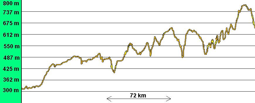 Terén: 20 km nezpevněná cesta, asfalt 124 km