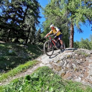 V místě Prui, které v zimě představuje výstupní stanici lanovky střediska Scuol, se můžete občerstvit v restauraci s teráskou a následně se vydat několika různými variantami do vesničky Ftan. My se rozjeli z kopce dolů nejprve po šotolinové cestě, následně jsme po několika zatáčkách odbočili na přírodní trail s číslem 447 (ukazatel na křižovatce vás navede), který nás protáhl pohádkově modřínovým lesem. Trail je opět přírodního charakteru s nízkou náročností, může se po něm projet i méně zkušený biker, ale díky hravým pasážím jej ocení i ostřílenější jezdci.