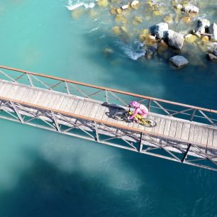 Po chvíli houpání po vrstevnici a jednom prudším výšlapu do kopce (který jsme poctivě tlačili) se dostanete na šotolinovou cestu, která vás protáhne údolím jako vystřiženém z obrázku a následně donutí krátce zašlapat do pedálů do kopce. Po výšlapu na náhorní plošinu Alp da Munt se připravte na jednu z nejkrásnějších pasáží trasy. Narazíte tu na přírodní plynulý trail vlnící se z kopce po bezlesých pláních a kolem horských borovic s výhledem na nejvyšší vrcholy pohoří Sesvenna. Těžko uvěříte, že právě nehrajete nějakou roli ve filmu Pána prstenů, jak je tu krajina úchvatná.