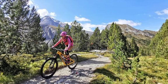 Takovým „must-ride“ tipem pro bikery v okolí Scuolu je Supertrail Scuol, který měří celkem 28 km a jde o rozmanitý horský okruh vedený z velké části po přírodních singltrailech. Okruh startuje přímo ve Scuolu, odkud vás na vrchol Motta Naluns pohodlně vyveze kabinková lanovka, kterou máte jako ubytovaní hosté Scuolu zdarma. Od výstupu lanovky už to chce ovšem šlápnout do pedálů, a to rovnou do nekompromisního „štajgru“ po šotolinové cestě, která vám v kombinaci s řídkým horským vzduchem nenechá nic zadarmo. Světlem na konci tunelu je tu horská hospůdka Chamanna Naluns, což je na dlouho poslední možnost občerstvení, takže komu chrastí franky v kapse, může se tu posilnit na terase s výhledem. Ceny jsou samozřejmě typicky „švýcarské“, tedy za Weissbier dáte 7 CHF a za kávu 4,50 CHF.