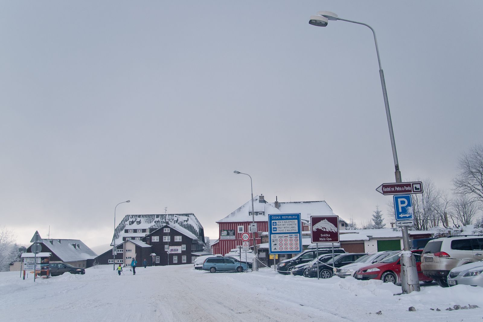 Na Pomezní Boudy (1050 m n. m.) se lze dostat buď motorovou dopravou po silnici č. 252, nebo po hřebeni Krkonoš po