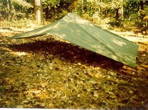 Jednoduchá varianta přístřešku je tedy jen šikmo vypnutá plocha ponča, např. mezi dva stromy a jednomu bivakujícímu tak umožní, za nepříliš extrémního počasí, nouzové přenocování. Spojením dvou ponč dohromady získáme poměrně rozměrné „áčko“, které až na hřbetní šev a případně špatně uzavřené kapuce, poskytuje dostatečnou ochranu před deštěm i větrem ze dvou stran. Při nárazovém větru a větším dešti se někdy v prostoru kapuce utvoří „jáma“, ve které se zadržuje voda, přes zalepené švy však dovnitř nepronikne. Spojením více ponč dohromady může pak vzniknout i dost velký chráněný prostor pro více lidí a to nejen na přenocování, spojení ale pouze za druky může však být ve větru nedostatečné, doporučujeme provázání oček dohromady. Přístřešek bez protečení vydrží celonoční déšť i prudkou bouřku, jen při silném větru, například při té bouři, je nutné přístřešek velmi dobře kotvit, běžné drátové kolíky v mokré zemi ale moc nedrží!