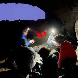 Jako místo nocování byla v plánu také jedna jeskyně, kde jsme se tu noc také schovali před deštěm. Byla prostorná s unikátní atmosférou, a poprvé jsme spali všichni pohromadě.