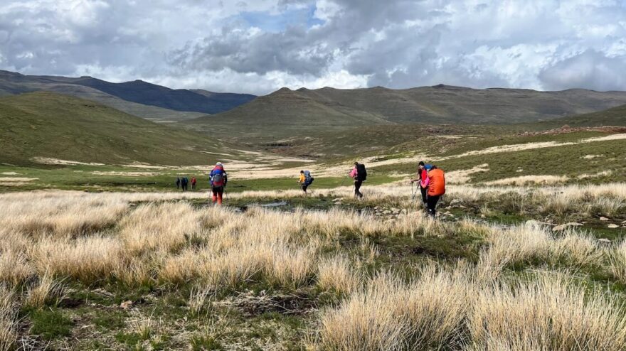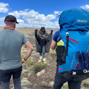 Hned první den treku byl mimořádně náročný. Začali jsme stoupat, a ačkoliv jsme věděli, že to bude dřina, realita bolela. Déšť nás sice potkal brzy, ale netrval dlouho. Odpoledne jsme se dostali na planinu, ale klid nenastal. V Lesothu jsme byli tak trochu ilegálně, a tak Honza zavelel zrychlit. V sedle začalo hřmít a bouřka se blížila, což mě dohnalo na hranici sil. Stan jsme stavěli za deště a já, vyčerpaný, usnul s myšlenkou: „Tady umřeš, kamaráde“.